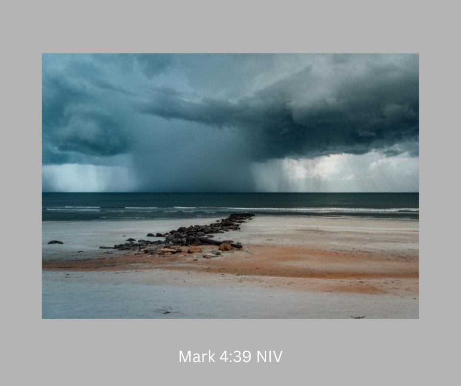 “He got up, rebuked the wind and said to the waves, “Quiet! Be still!” Then the wind died down and it was completely calm.”